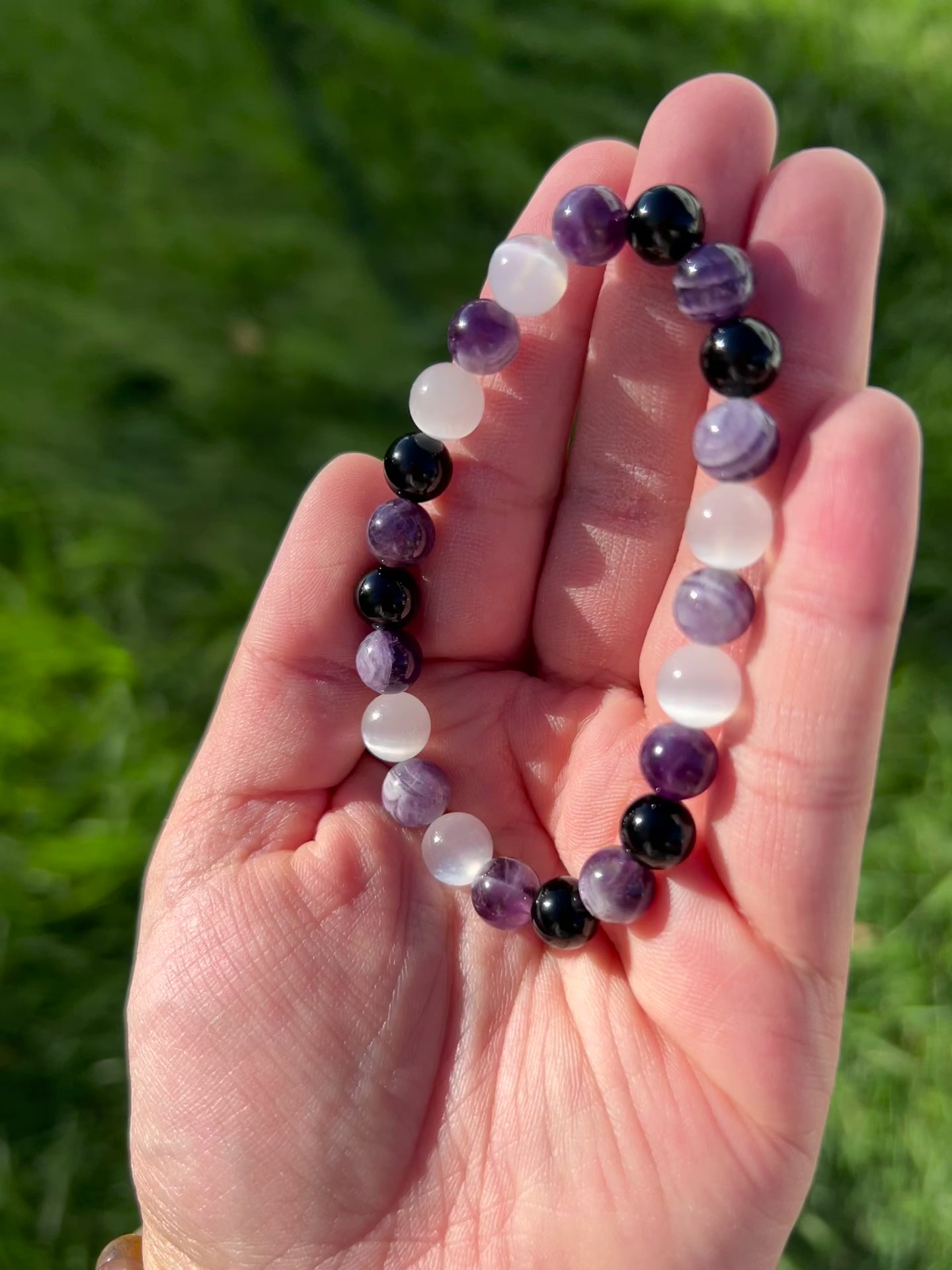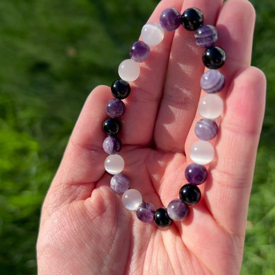 Reduces stress and anxiety: Amethyst's calming properties can help to reduce stress and anxiety, while black agate can provide a sense of security and grounding.
