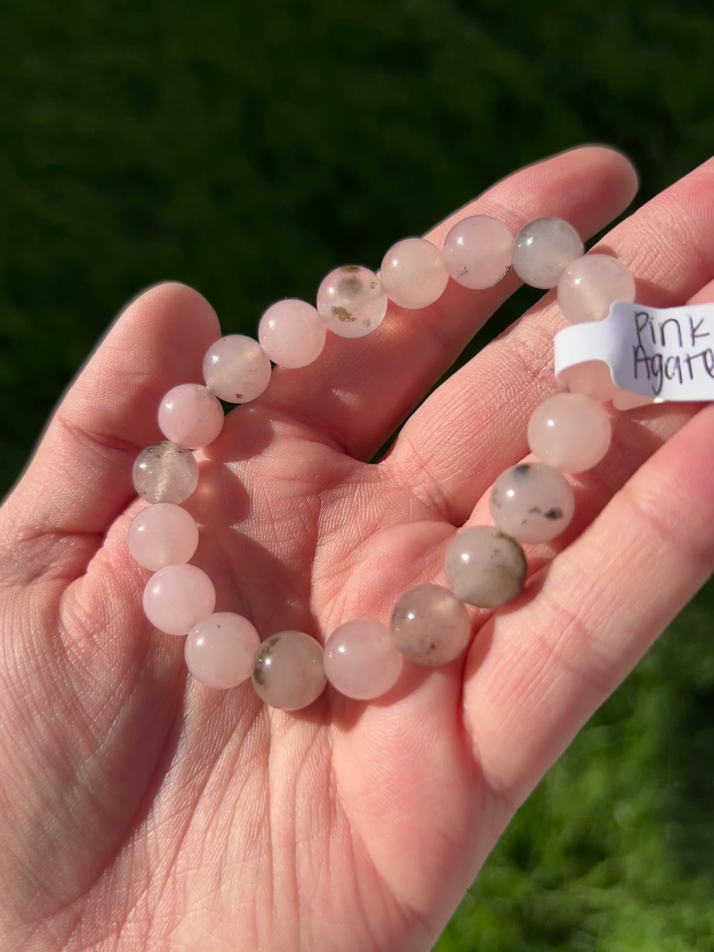 Pink Agate stimulates intuition, imagination, and artistic qualities. It a stabilizing stone that can help with balance and harmony. It is associated with the heart chakra and the zodiac signs, Taurus and libra. It also increases security and self-confidence.